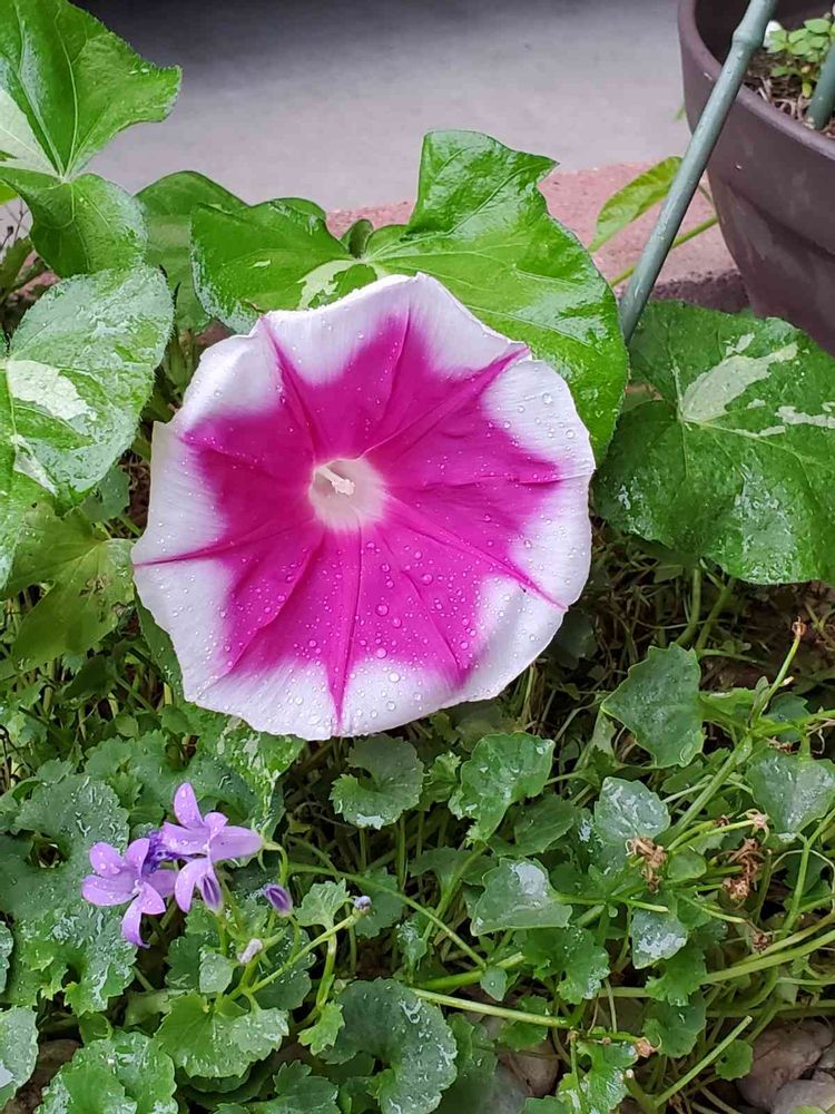 今日のお写真とは違いますが、さっちゃんさんと同じような小さめの朝顔さん(西洋朝顔と書いてあります)も咲いてます~🤭