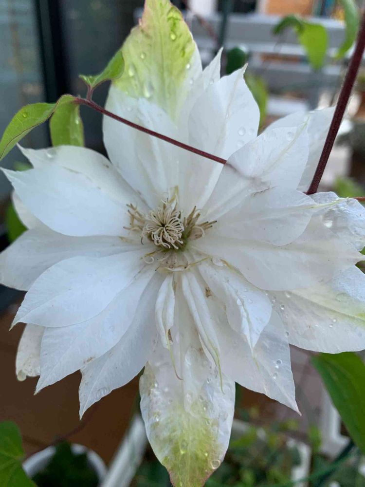 昨日朝早くお別れに出かける時に、ふと…白いクレマチスが咲いている事に気付きました。