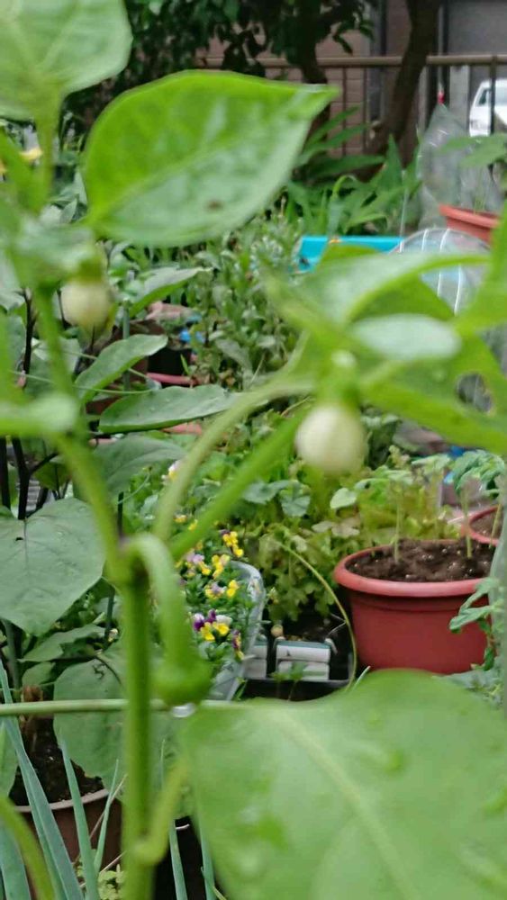 ピーマンの向こうに一杯何か鉢ならんでるよ🎵🍀それが気になるわ⁉️