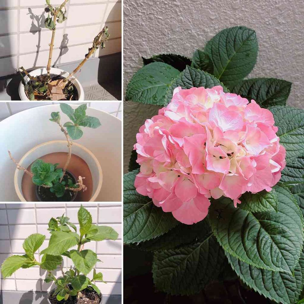 去年の紫陽花を職場の裏庭で管理していたら冬に枯らしてしまい、家に持ち帰り、復活させました。