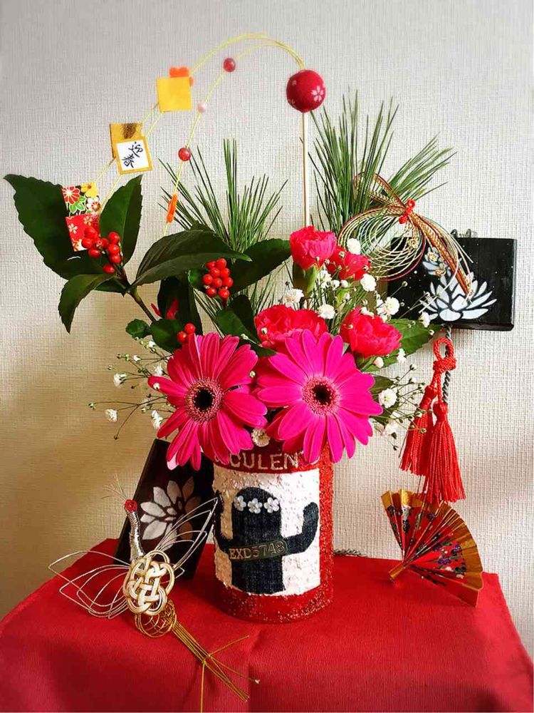 ガーベラにお正月の御飾りを付けて素敵👏👏