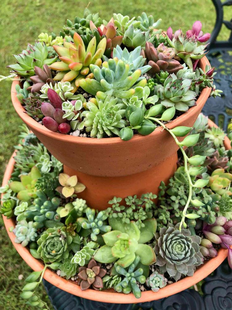 雨で庭仕事出来ないから前から作ってみたかった多肉タワーに挑戦‼️チマチマと時間を忘れて楽しかった~💕