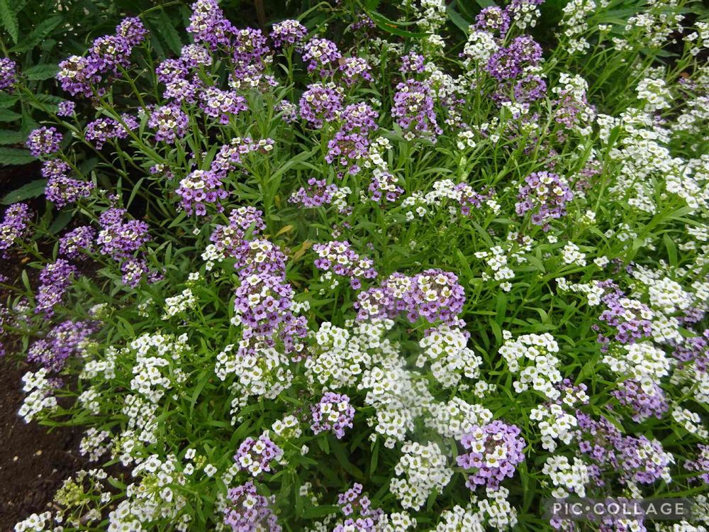 スイートアリッサムの白と紫の絨毯ですね。何かホッとしますね😊