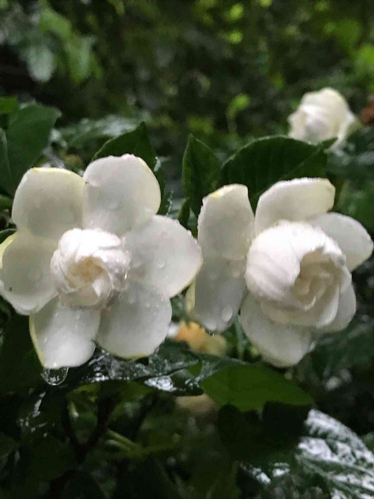 ☔にも負けずクチナシ綺麗に咲いてますね💕💕💘