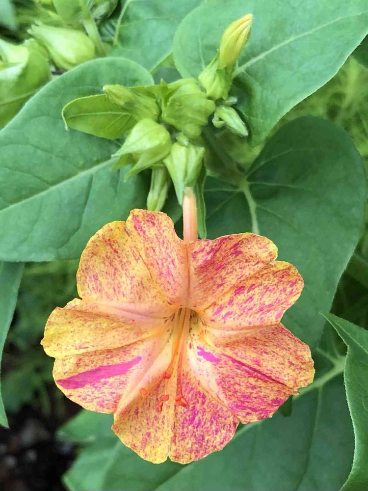 オシロイバナは単色の花と、混ざり合った色の花があって🧡💛楽しいお花ですね😅