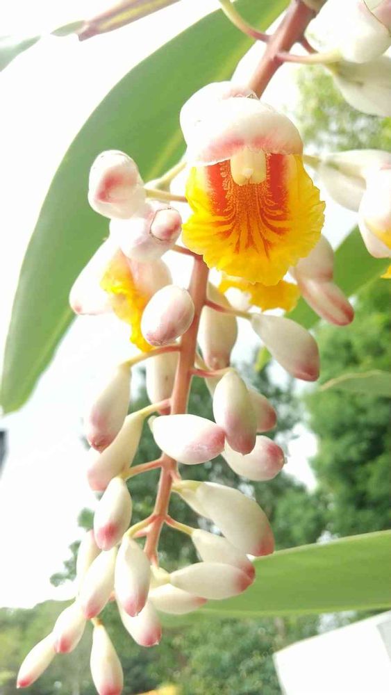 先日つぼみだった月桃(ゲットウ)が、に咲いてました。