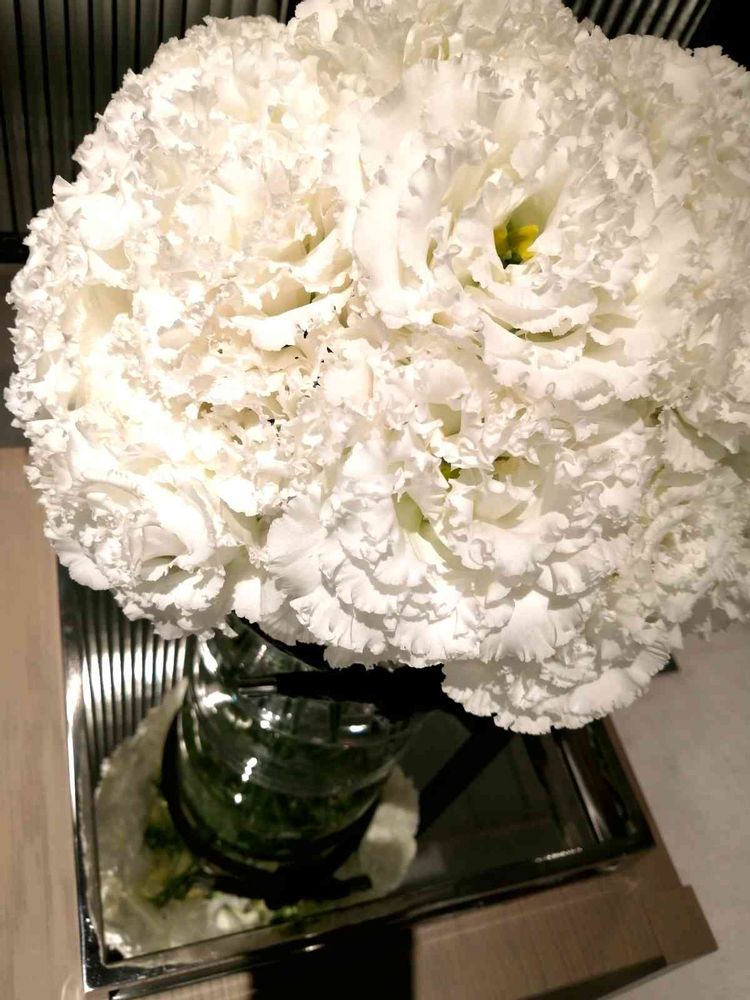 化粧台の片隅に、真っ白なトルコキキョウだけをふんわりと♡