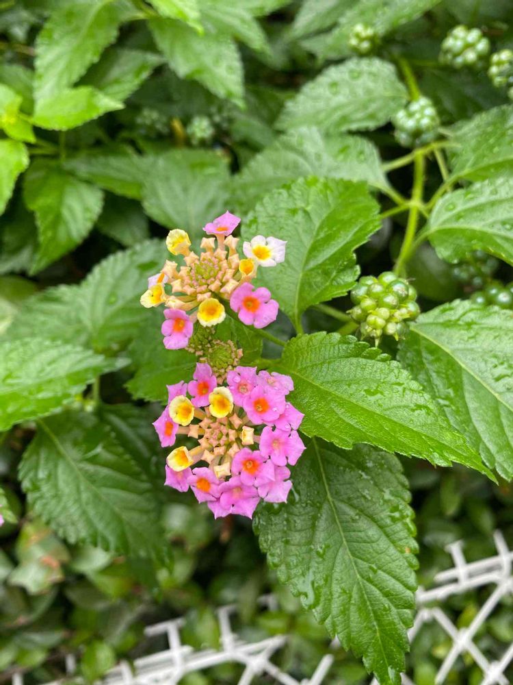 おはようございます^_^今日も雨☔️模様です😹ランタナ和名シチヘンゲです。花言葉は''心変わり"でも憎めない可愛い花です🤗