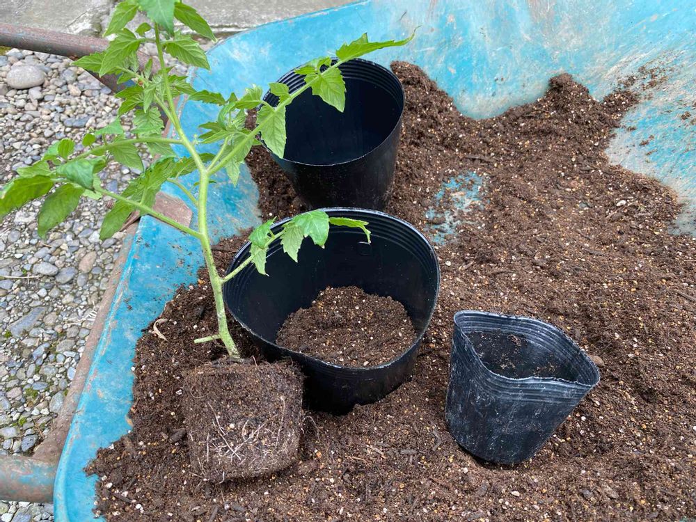 水差しミニトマト株を9cmポットから15cmポットへと鉢増ししました🍅