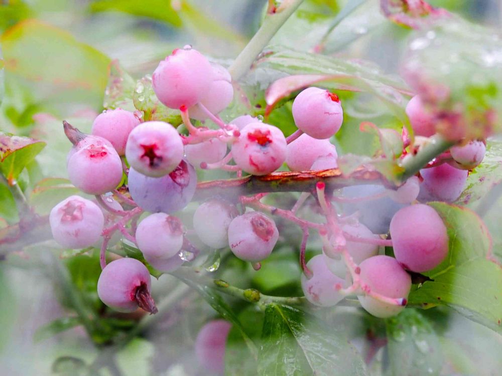 まだ熟す前の紅色のブルーベリーの実はかわいいね❣️