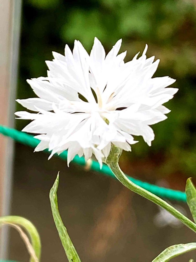 種からの矢車菊が1本だけ育って1輪だけ咲いたのよ😅おぉ〜白でふ🥰もう、運命としか思えない( ᵒ̴̶̷̤◦ᵒ̴̶̷̤ )