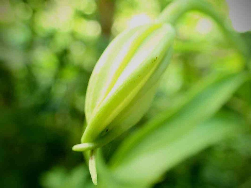 グロリオサ(キツネユリ)の蕾です(*^^*)品種は、開花してみたら、どうもファイアーバードかなあというところです。この写真は6月中旬に撮った物です。