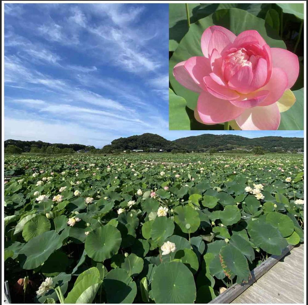 全景と書こうとしましたが、これでもまだ全景では、ないのです。奥の奥まで、ハスの花が咲いているのが、見えるでしょうか❓