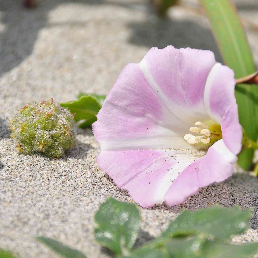 白い砂浜にハマヒルガオが映えますね🌸