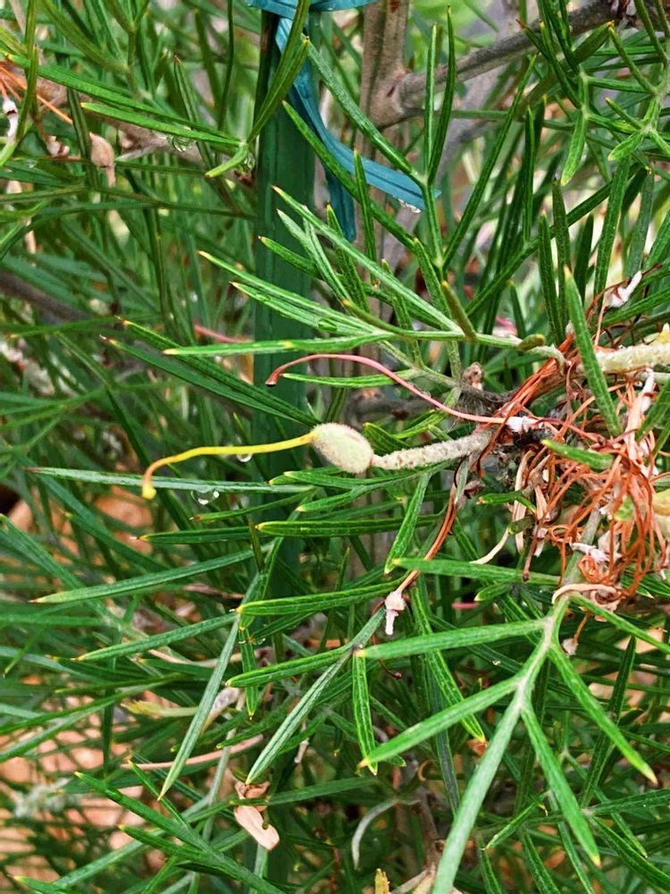 花が終わったグレビレアの先に、なんかついてる😅