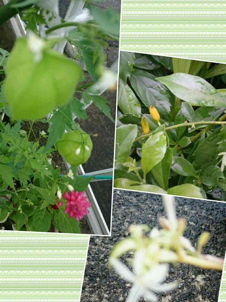 いんげん豆、種無しピーマン、実の収穫はちょっと減り気味肥料不足になってるかも。