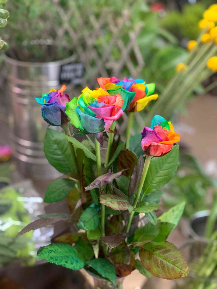 すごいですねぇ✨🌹🌈🌹✨ 吸わせてこの色にしている様です! ぜひ見にご来店くださいね♪