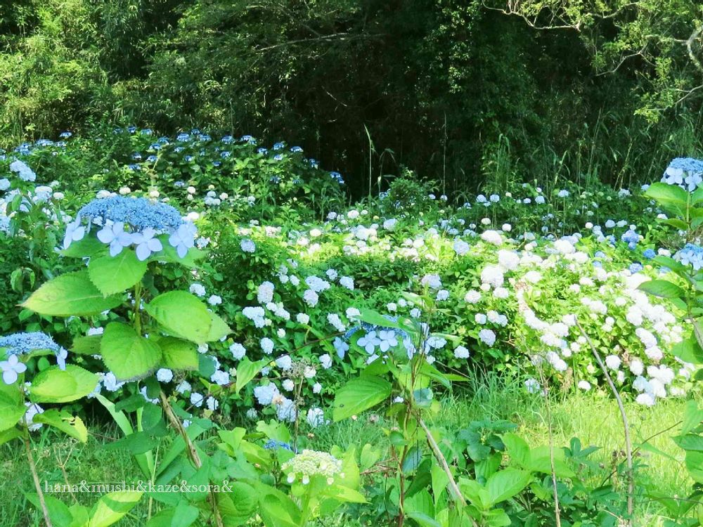 白と優しいブルーのアジサイの群生🎇