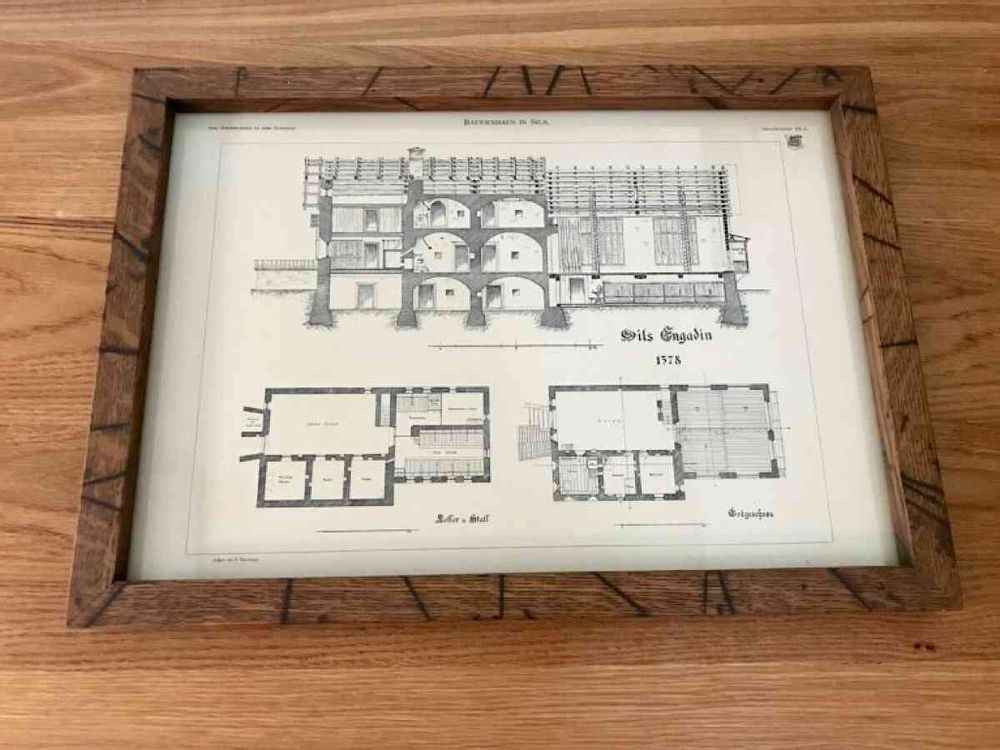 ドイツの昔の農家(DasBauernhaus)の建築ポスターを、traceのオークフレームで額装しました。