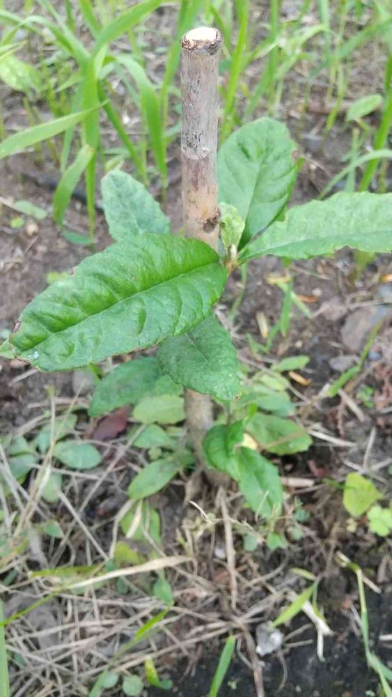 冬に 雪の下にしてしまい(一晩で埋もれて分からなくなってしまった) 途中で折れてしまいました もうダメかと思ったら下から新芽が‼️嬉しい😆 がんばれー 今年は早めに雪囲いしないと!です