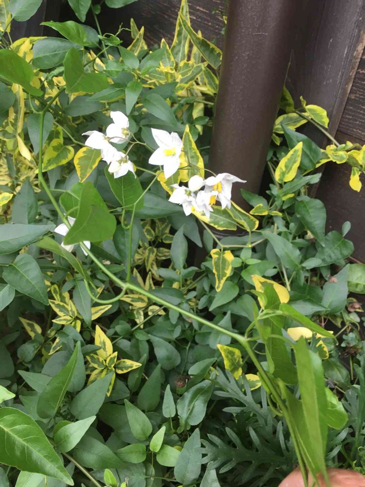 斑入りツルハナナス🍆ナス科つる性の園芸品種でしたが、斑入りでなければ野草のよう。 5/22(土)お昼頃