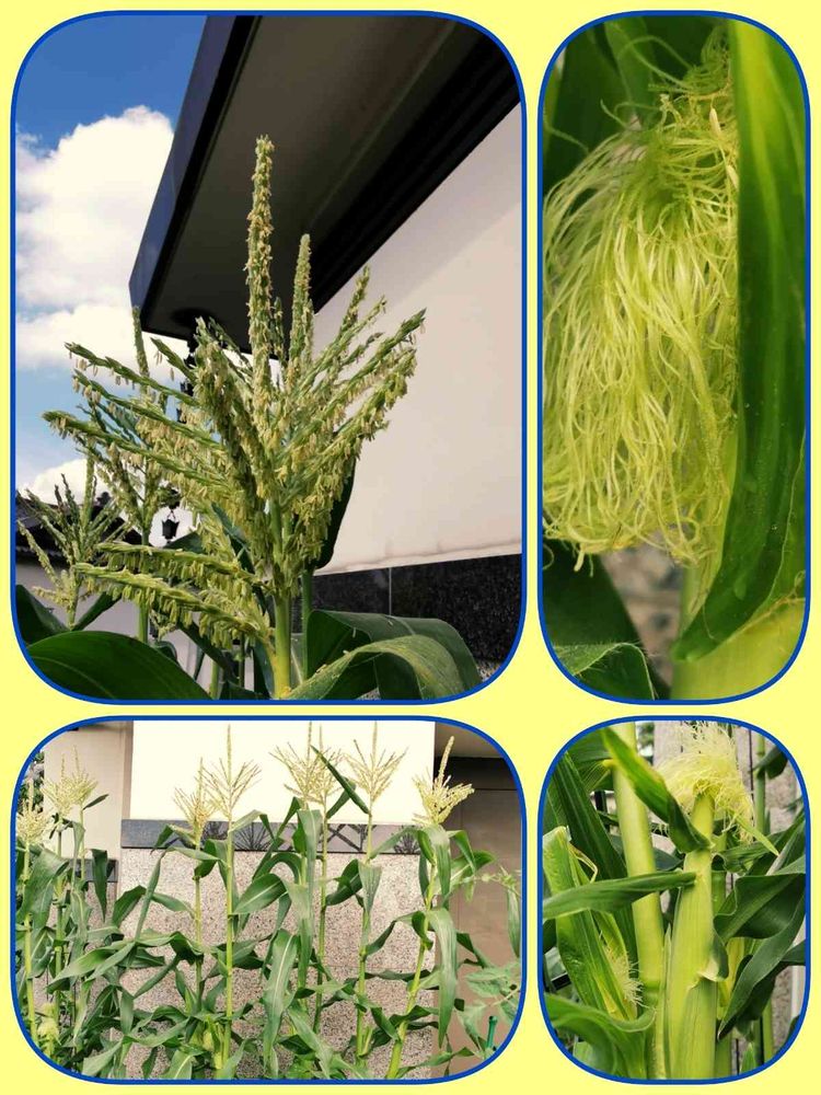 🌽とうもろこしです!順調に草丈伸びて雄花咲き、雌花も咲いて実がふくらんできました♫