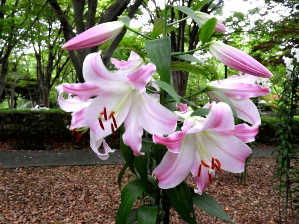 お出かけ先,ピンクの百合,公園の花壇の投稿画像