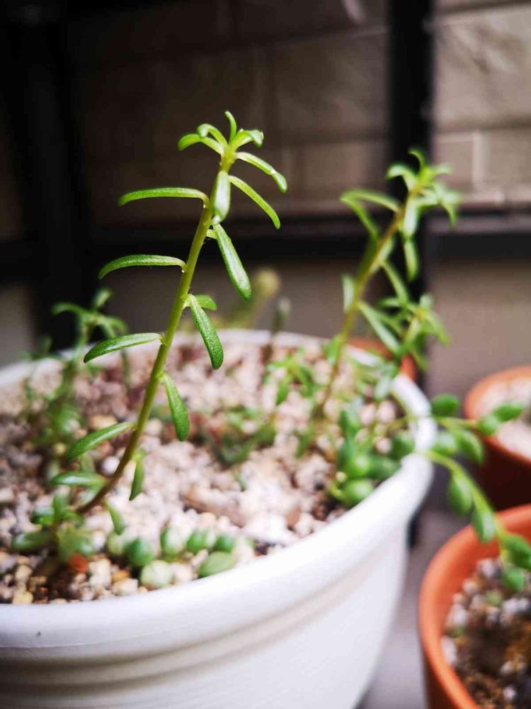 ポイポイ鉢なのでベランダの棚の一番下で徒長してます🌿🌿🌿