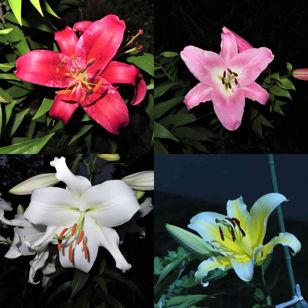 夕闇せまる中、綺麗なユリ。フラッシュを炊いて パチリ