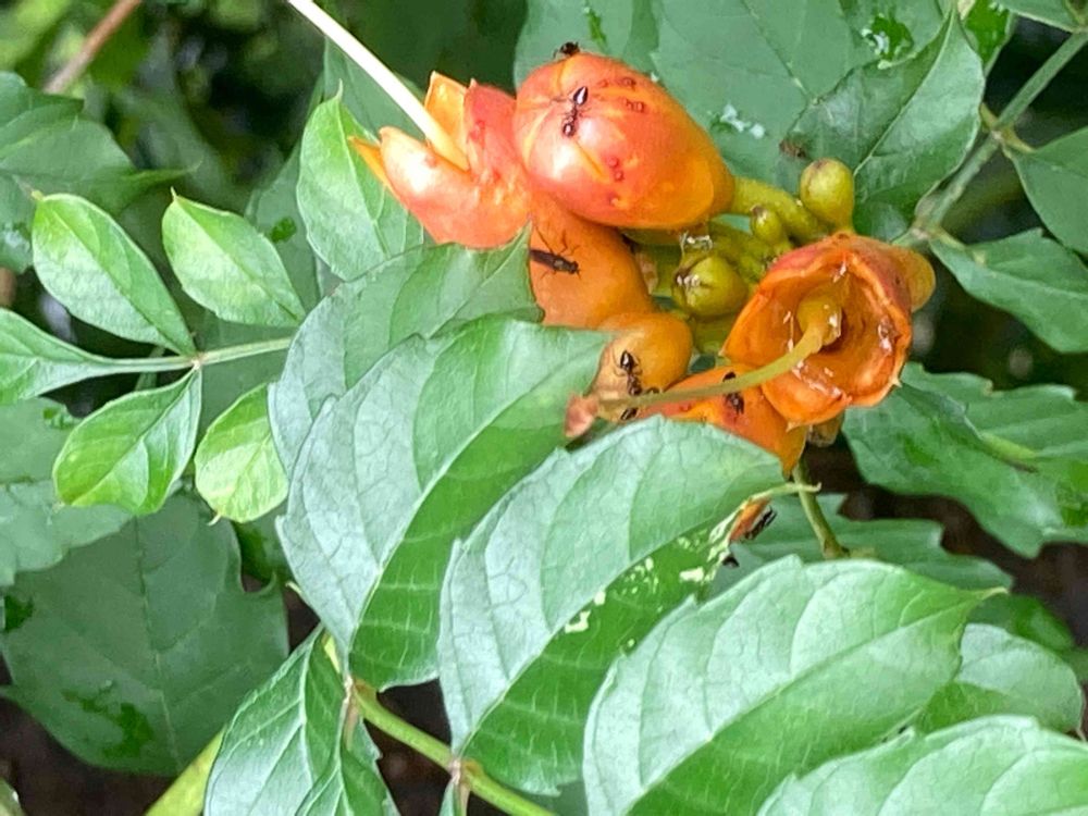 やはり目の前のアメリカンノウゼンカズラも撮りたくなった、アリさんが蜜食べてるかな?