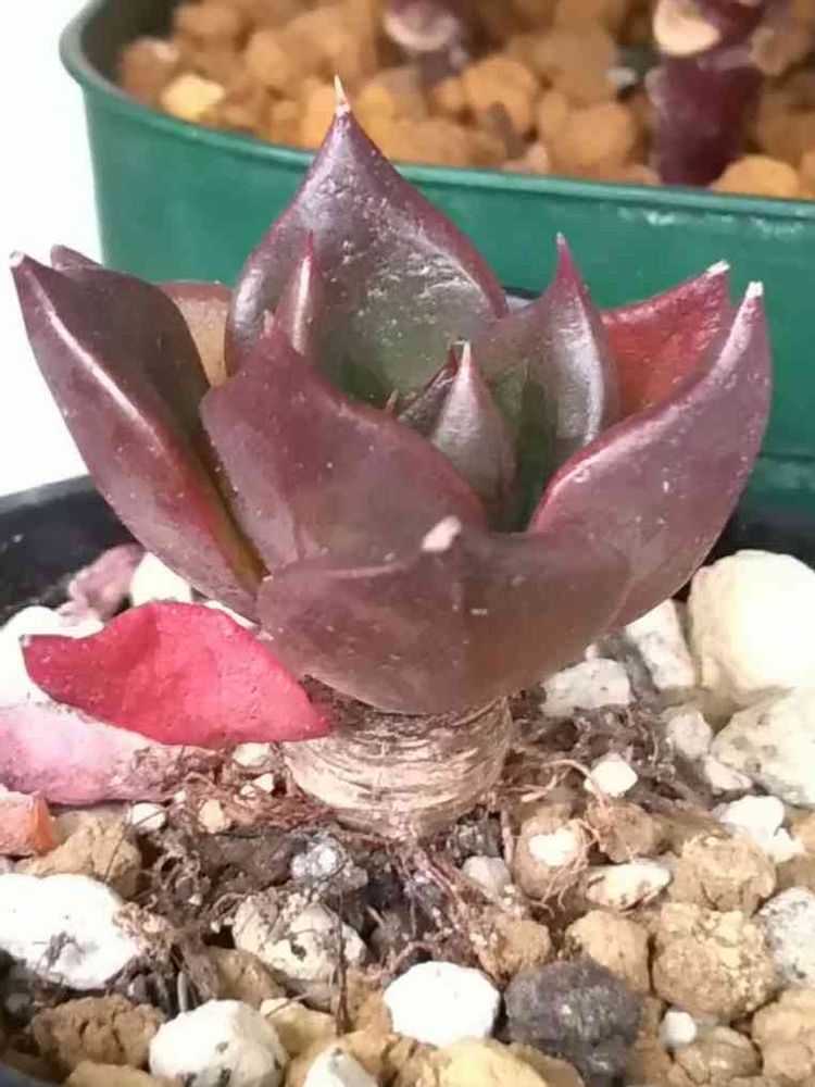 うちにも、手のひらより大きいブラックプリンスがいたんですが、突然下の方から枯れたりジュレたりしたので、思い切って✂️して取れるところを葉挿し、上の方はきれいにして鉢に植えましたが、🌠になってしまいました😓