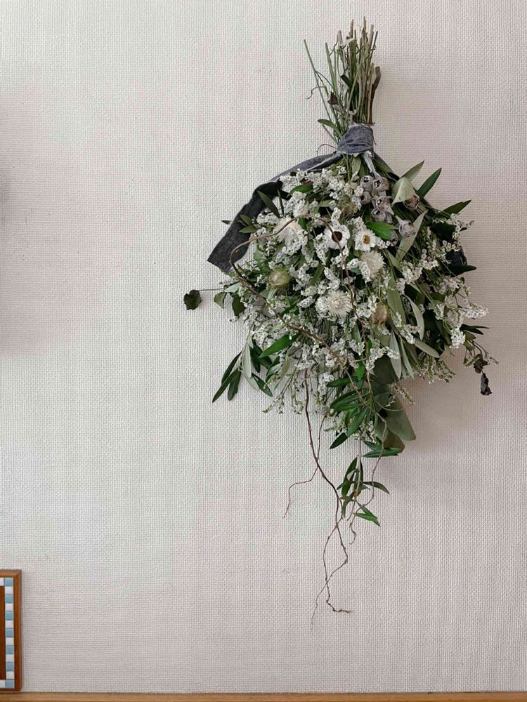 季節の草花をドライフラワーにしてスワッグやリースを作っています。