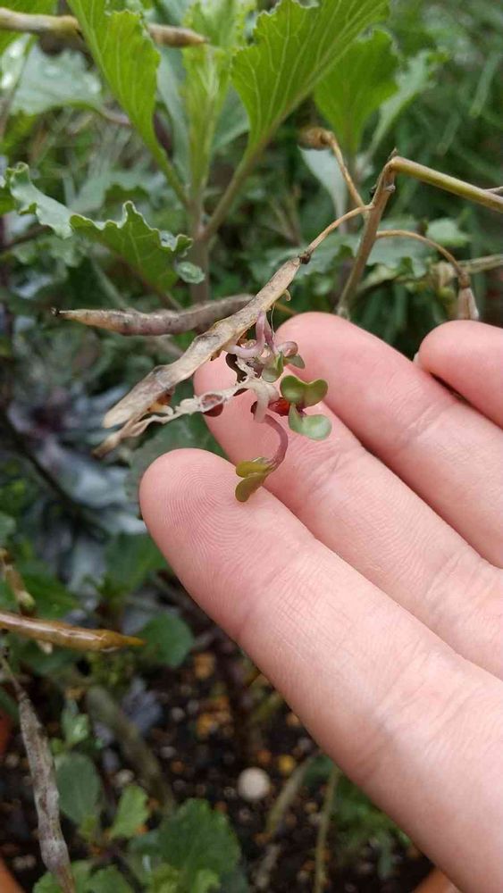 小さな庭,葉牡丹の種子鞘 種子が発根,珍事の投稿画像