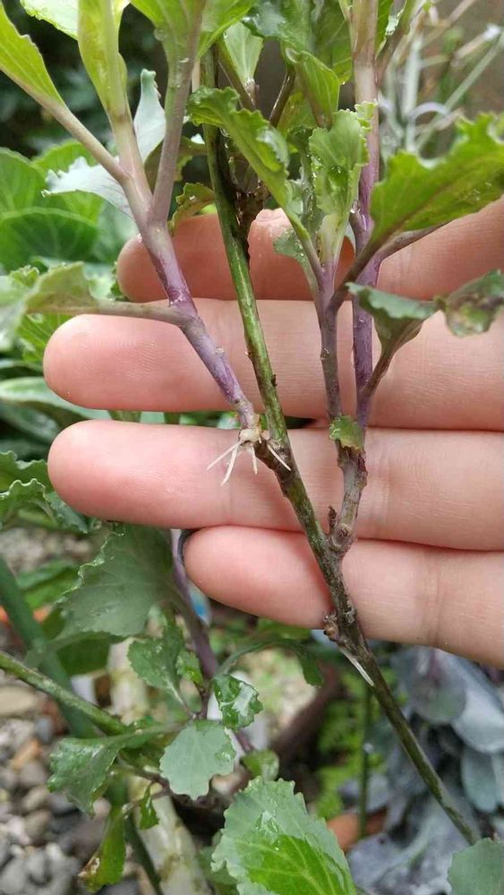 小さな庭,葉牡丹の新芽 発根,珍事の投稿画像