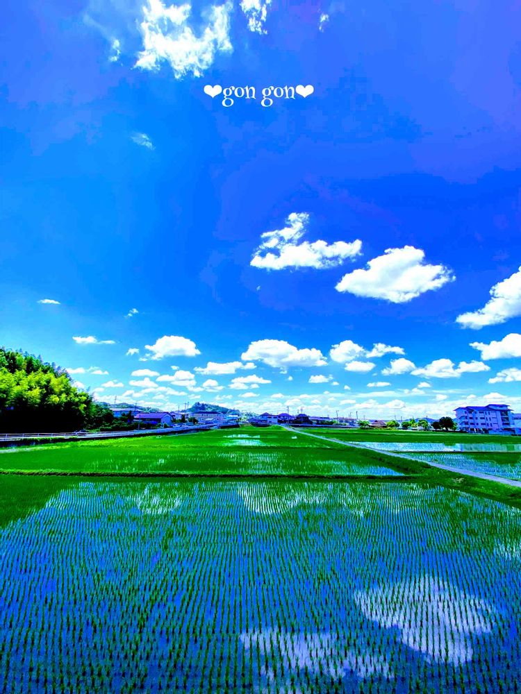 せめてこの気持ちの良い爽やかな空💙と田んぼ🌱で深呼吸😲スゥ〜🤗