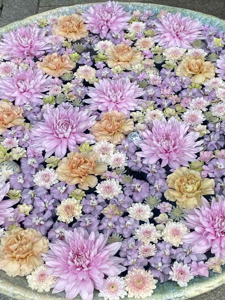 行田八幡神社⛩の花手水は、花の数も多く、花の色合いもキレイで、本当に素敵です。