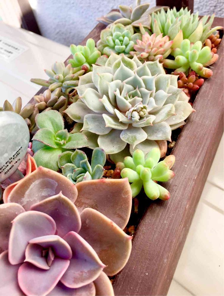 木箱のナチュラルな感じにプクプク多肉が良く似合ってるねー(´・∀・`) 可愛いー💕