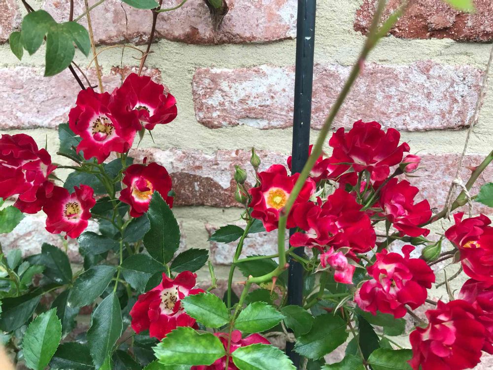 壁に映える赤い薔薇 でも可愛い感じという事でこれにしました。ちょっとうどん粉病が有ったのが気になりますが😅