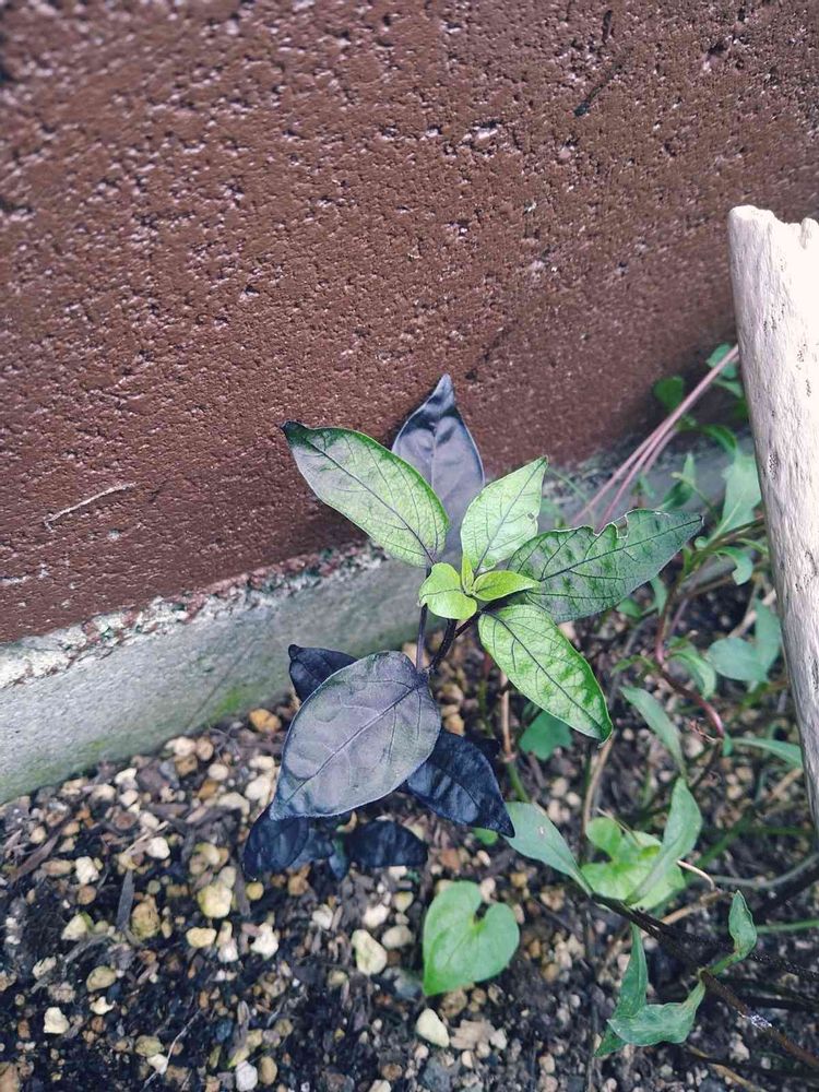 雑草っぽくないこの黒っぽい葉は何だろう?