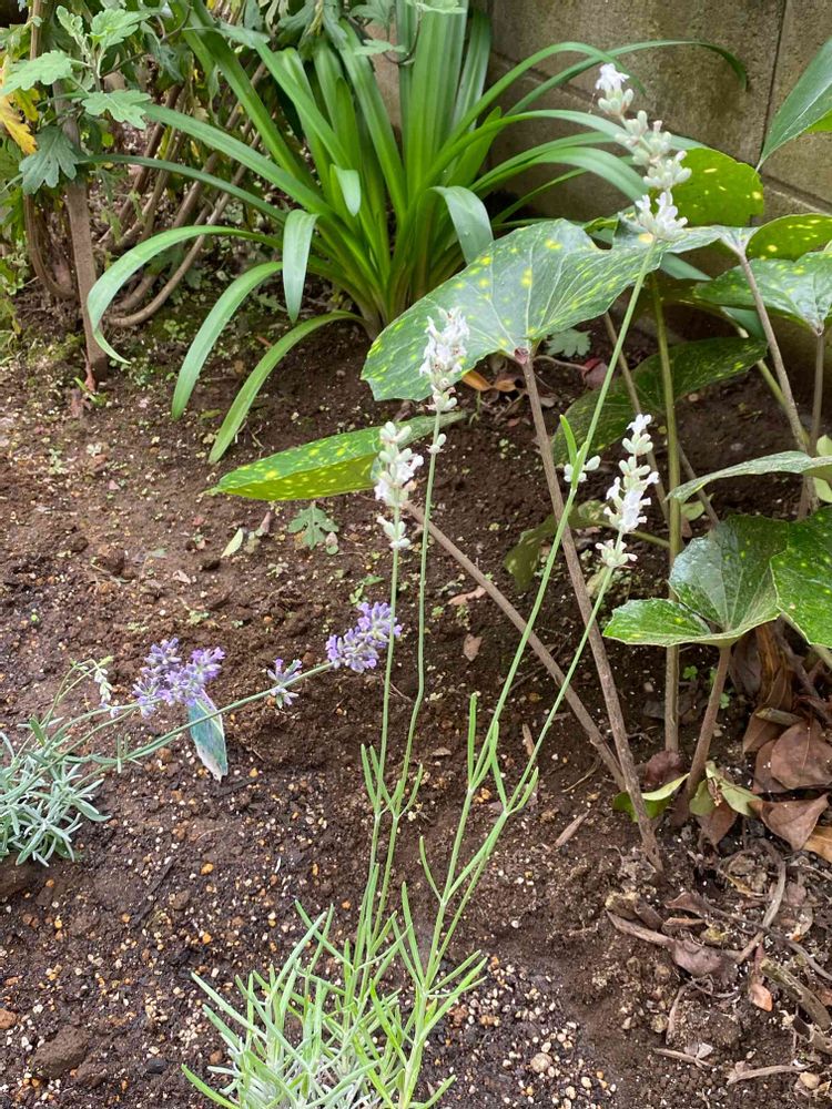 白いラベンダーと紫のラベンダーを植えました白いラベンダーを写してたら紫がチラリと入って来ました😁