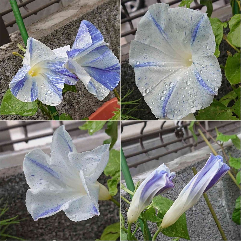 おはようございます😊先週の色んな朝顔です❤️雨に濡れた感じも蕾も好きです🎵今朝もまたまた☔😭