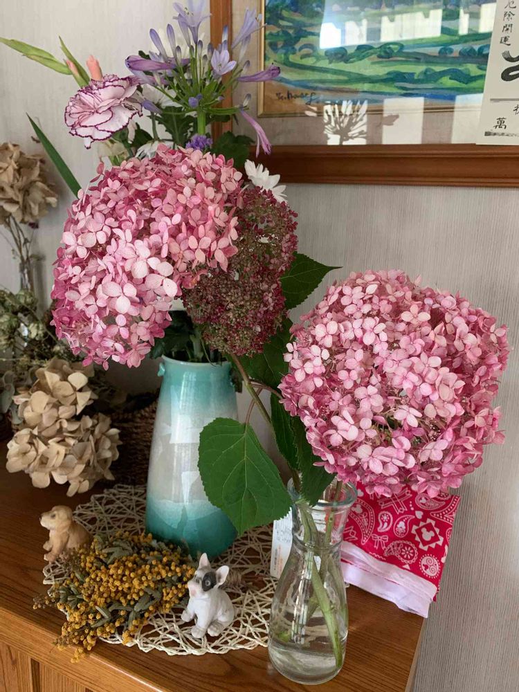 ピンクアナベルちゃん可愛い👀💕✨ですね👌みっちりとモリモリ(*•̀ᴗ•́*)و ̑̑(๑ᵒ̴̶̷͈᷄ᗨᵒ̴̶̷͈᷅)✧ステキღディスプレイも華やかになりますね