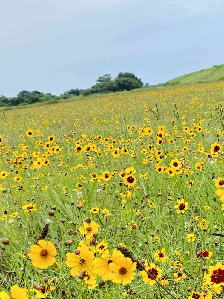 ハルシャギク(蛇の目草)が一面に咲く草原、きれいですね・・でも・・実はここは河川敷のグラウンド、久しぶりに散歩🚶♀️に行き、この光景に唖然としました。