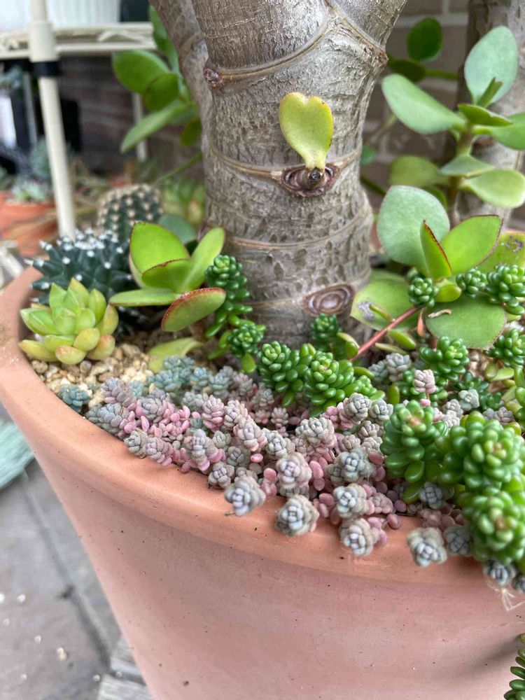 根元に多肉ちゃん植える発想が無かったので、なるほど〜🤣🤣🤣