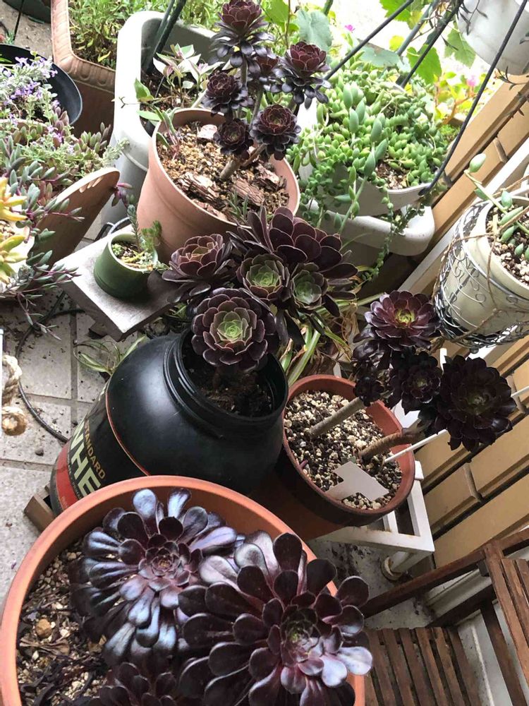多肉歴2年目の私はアエオニウムもカシミヤバイオレットも、全く同じに見えて分かりません😅笑