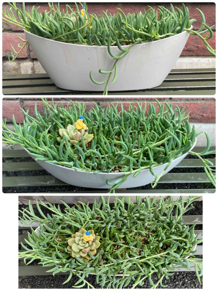 あとは鉢いっぱいになるまでは、ツルが伸びたら垂れ下げずに土の上に置いておくちょっと土を被せると尚良し、すると根付いて文頭してツルが増える...みたいな感じです✨🤗