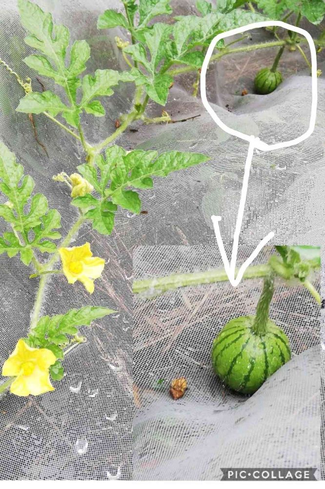 スイカ、の赤ちゃんです! 庭で西瓜植えたのは初めての事なので、凄〜く嬉しいです。まだビー玉位の大きさですが、ズームアップした写真見て下さい!縦縞の西瓜模様!!😍