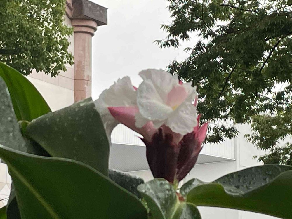 さん、葉っぱと花に雨粒が写っています☔️