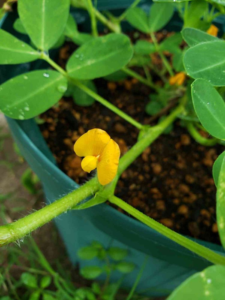 今年初めて落花生を栽培しています。黄色い花が咲きました😊
