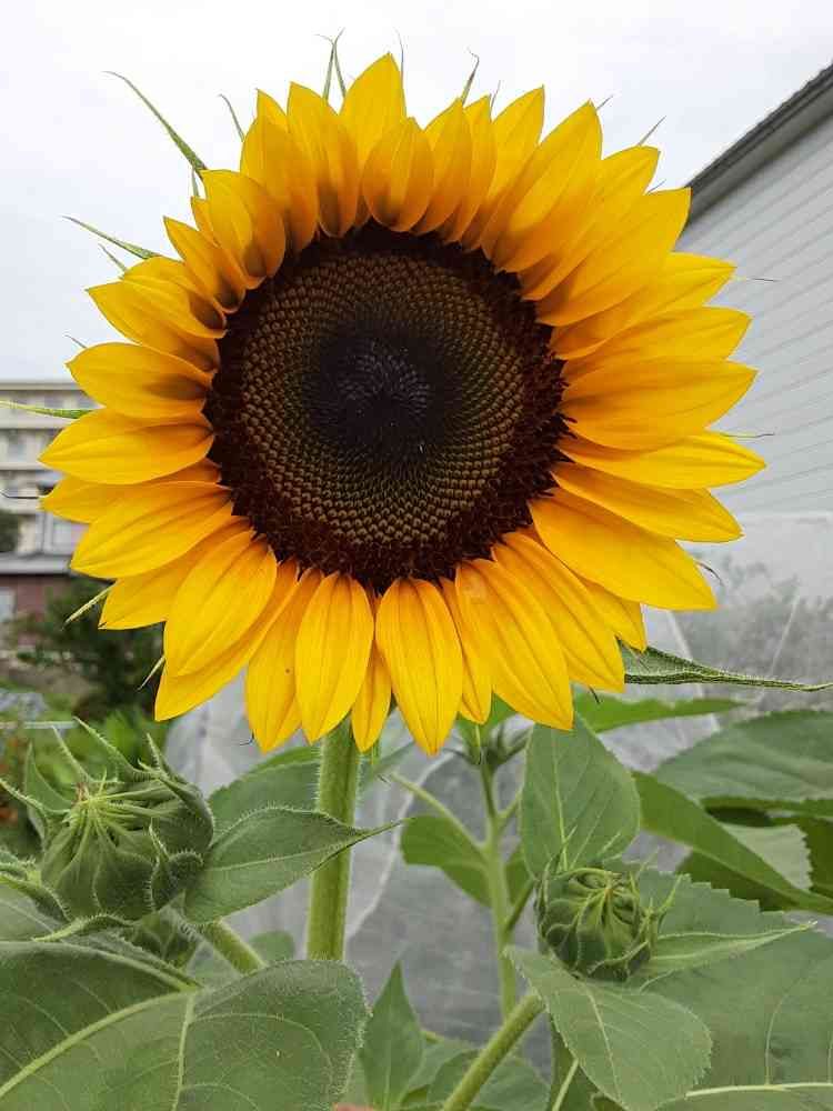 私の背よりも高くなり、脇芽にも蕾がいっぱい、去年の🌻ってこんなに大きかったかしら?👀